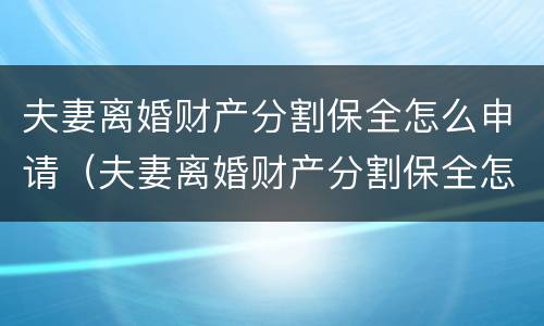 夫妻离婚财产分割保全怎么申请(夫妻离婚财产分割保全怎么申请解除)