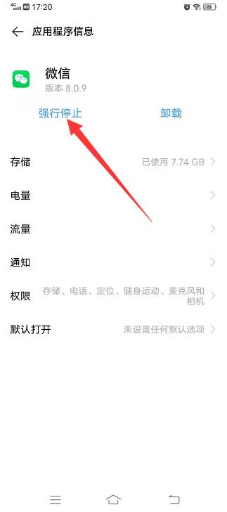 进入页面后,点击强行停止,重新打开微信就可以正常使用了。