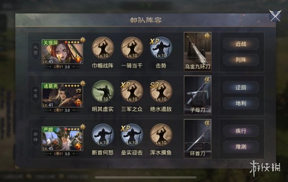 战法:XP三军之众+S3绝水遏敌;迂回+地利