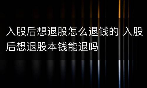 入股后想退股怎么退钱的 入股后想退股本钱能退吗
