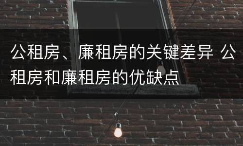 公租房、廉租房的关键差异 公租房和廉租房的优缺点