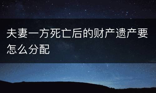 1、夫妻一方死亡后的财产遗产分配是先将夫妻共有财产的一半分出为配偶所有,剩下的这一部分是第一顺序继承人平等的继承。而第一顺序继承人一般就是配偶、子女和父母,这些人可以均等的分割逝者的个人合法财产。不过
