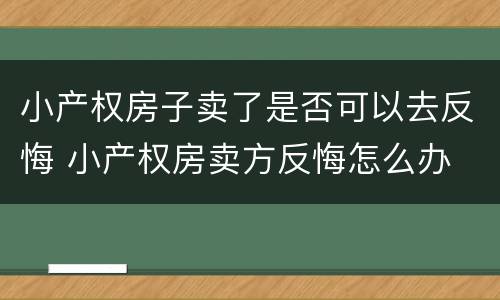 小产权房卖了是可以反悔的。在集体组织范围内买卖小产权房是受法律保护的,如果有房屋买卖合同,走法律程序会以一般买卖合同为准,一方已经履行合同即支付购房款,另一方也有履行合同的责任交付房屋,否则视为未履行