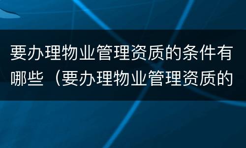 要办理物业管理资质的条件有哪些(要办理物业管理资质的条件有哪些呢)