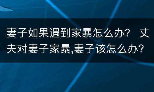 妻子遇到家暴行为,应当通过法律途径维护自身合法权益权益不受到侵害,可以选择通过妇女保护机构寻求保护,也可以直接向公安机关报警或者向人民法院提起诉讼离婚,并主张精神损害赔偿,如果家暴行为造成妻子轻伤及以
