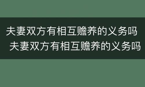 夫妻双方有相互赡养的义务吗 夫妻双方有相互赡养的义务吗怎么认定