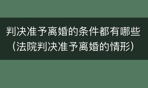 判决准予离婚的条件都有哪些(法院判决准予离婚的情形)