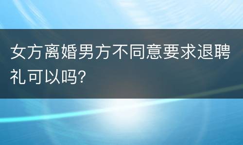 女方离婚男方不同意要求退聘礼一般是不可以的,彩礼给付之后没有特殊的情况是不能退还的,但是如果是给付之后导致了给付人的生活困难,或者是双方结婚之后没有共同生活可以退还彩礼。