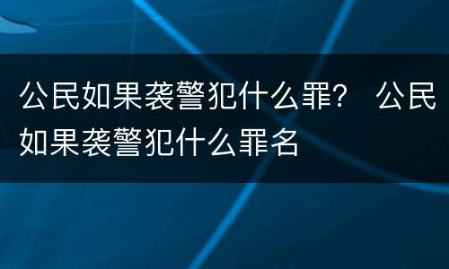 公民如果袭警犯什么罪? 公民如果袭警犯什么罪名