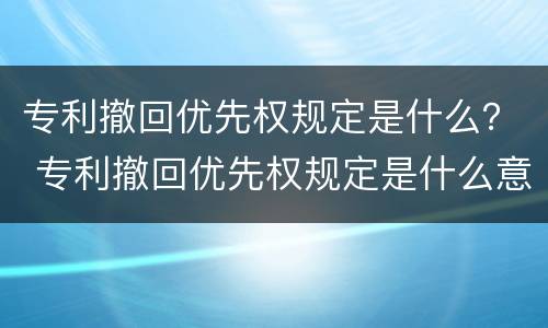 专利撤回优先权规定是什么? 专利撤回优先权规定是什么意思