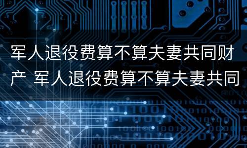 军人退役费算不算夫妻共同财产 军人退役费算不算夫妻共同财产范围