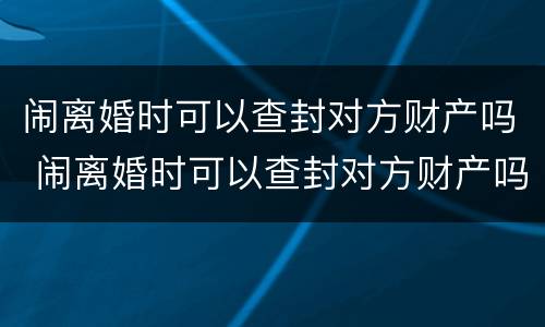 闹离婚时可以查封对方财产吗 闹离婚时可以查封对方财产吗知乎