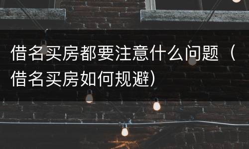 1、弄清房屋性质。应该了解清楚房屋的产权性质,房屋能否上市交易,借名购买是否违反国家政策性规定,防止将来无法取得房屋所有权。2、签署协议约定权责。借名人都应委托专业的律师起草并签订借名买房协议,约定清