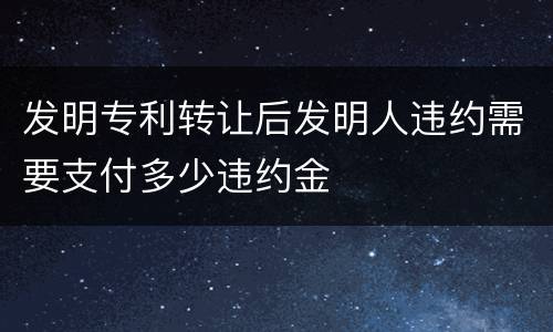 发明专利转让之后,发明人违约的,违约金标准是以专利权转让合同中的约定为准的,《民法典》及相关法律制度中并没有统一规定专利权转让合同的违约金标准,如果没有证据证明专利权转让合同中约定的违约金过高或过低,