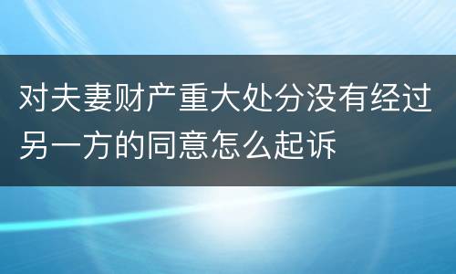 对夫妻财产重大处分没有经过另一方的同意怎么起诉