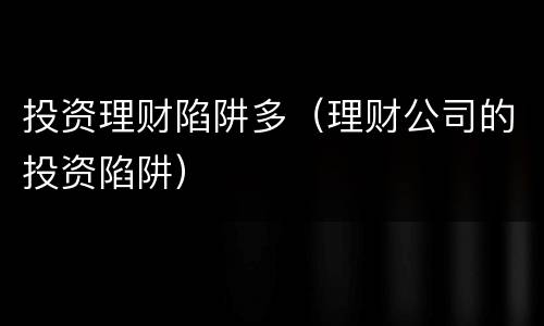 投资理财陷阱多 常见理财陷阱,在理财的时代,各种投资方式和理财产品五花八门,在让人们的资金得到合理运用的同时,也存在着华丽的陷阱,以下是几个常见的陷阱介绍,需要引起大家的重视。理财投资本身就存在着一定的风险,因此需要投资者或者理财人提高警惕。除了能够对投资理财的风险进行管控外,还需要保持清醒的头脑,不跟风,客观看待投资理财市场和产品。