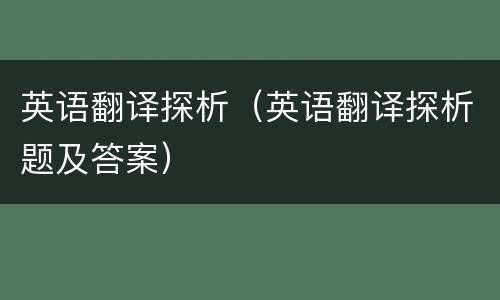 英语翻译探析,随着中国在经济、文化、科技等领域同国外交往的增多,特别是WTO实质化阶段的到来以及北京2008年奥运会的举办和上海2010年世界博览会的筹办,中国翻译产业正迎来一个黄金发展期。英语翻译可看作一门科学,它有着自己的内在科学规律;英语翻译也可视为一门艺术,具有极为重要的作用,本文就英语翻译进行探析。首先以倒译技巧和句子成份的转译技巧为例分析英译汉技巧。