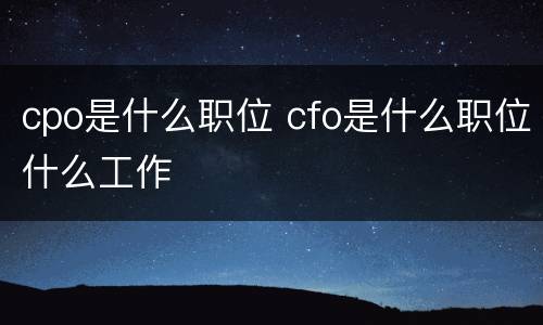 CPO指两种职位,分别是首席产品官和首席流程官。首席产品官负责产品线规划与管理;创新资源分配与创新项目管理;对企业持续成功创新负责。首席流程官是期货投资基金的主要管理者,也是基金的设计者和运作的决策者,负责选择基金的发行方式、选择基金的主要成员和决定基金投资方向等。
