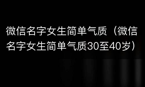 微信名字女生简单气质(微信名字女生简单气质30至40岁)