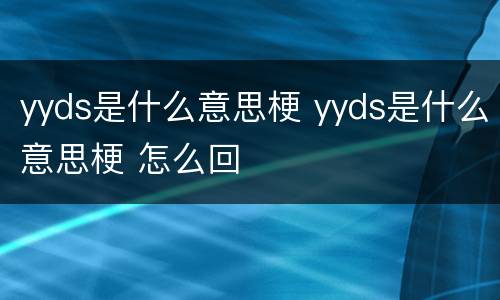 yyds是什么意思梗 yyds是什么意思梗 怎么回