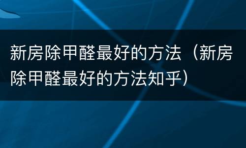 新房除甲醛最好的方法(新房除甲醛最好的方法知乎)