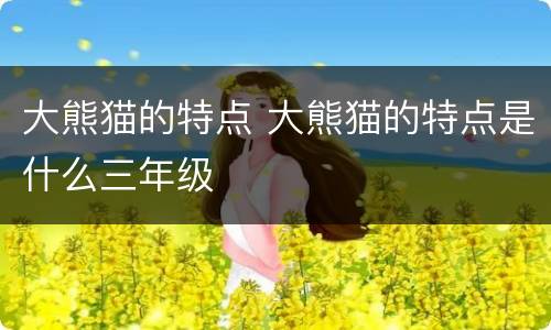 大熊猫的特点有:体型肥硕似熊、丰腴富态、头圆尾短、全身是黑白两色、脸颊圆、有大的黑眼圈,标志性的内八字的行走方式。也有解剖刀般锋利的爪子,大熊猫皮肤厚,善于爬树,爱嬉戏。