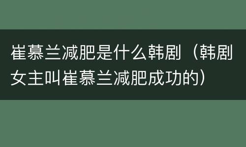 崔慕兰减肥是什么韩剧(韩剧女主叫崔慕兰减肥成功的)