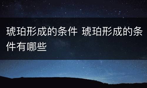 1、环境。琥珀的埋藏环境要长期稳定。2、时间。琥珀被埋藏的时间要够,低于2500万年的树脂、树胶无法完全石化,不能形成琥珀化石。3、温度和湿度。树脂树胶团块要被埋葬到温度、湿度适合的地下,温度过高则会融化,太干燥则会开裂、甚至化成粉末,裸露在地表则会风化得无影无踪。