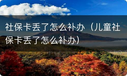 社保卡丢了怎么补办(儿童社保卡丢了怎么补办)