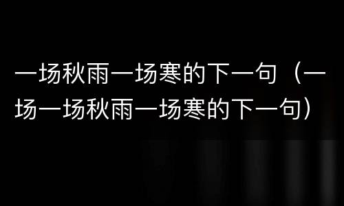 一场秋雨一场寒的下一句(一场一场秋雨一场寒的下一句)