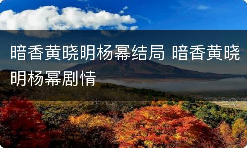 暗香黄晓明杨幂结局 暗香黄晓明杨幂剧情