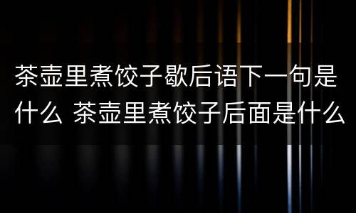 “茶壶里煮饺子”歇后语下一句是心中有数;肚里有货倒不出。意思是:壶嘴太小,而饺子要大过壶嘴,比喻肚子里有货说不出来。歇后语是中国汉族劳动人民在日常生活中创造的一种特殊语言形式。它一般将一句话分成两部分来表达某个含义,前一部分是隐喻或比喻,后一部分是意义的解释。