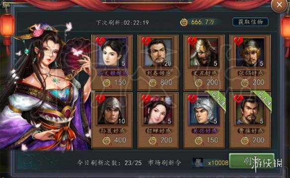 解锁市场,市场是兑换武将好感和其他道具的地方,当武将好感度达到一定值即可招募该武将,此建筑不可升级。
