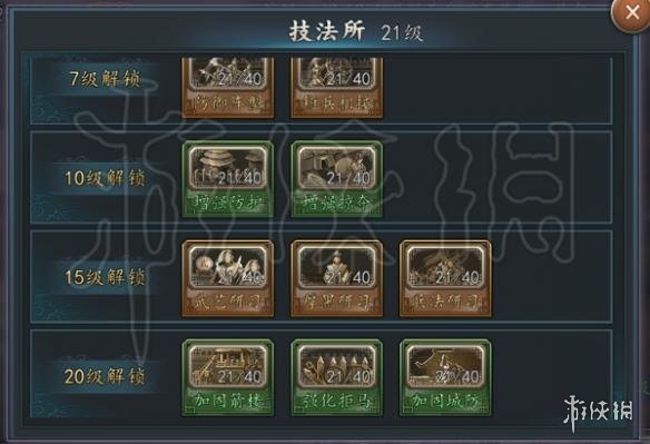解锁技法所建筑,技法所为研究军事或者内政科技的建筑,提升等级可加强科技效果。