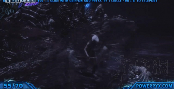 或者,去旁边的另一个高台,用鸟滑翔过来,距离不够时,用R1+○/RB+B,瞬移一下补足距离,获得蓝魂石。