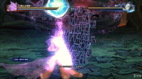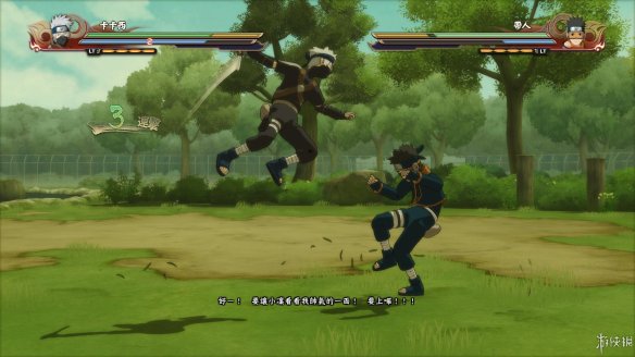 2,控制鸣人和伊鲁卡对战,伊鲁卡使用苦无的频率很高,如果随意的使用奥义的螺旋丸,是很容易被打断的。所以要看准时机攻击。