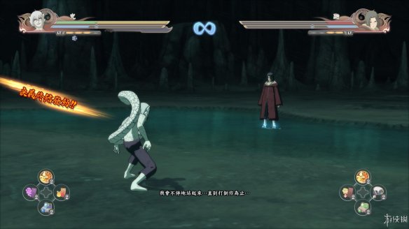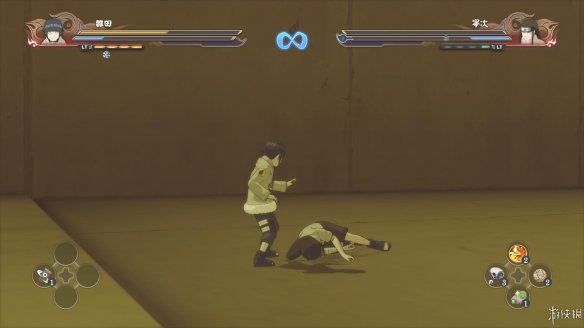 控制鸣人和佐助对战,这里鸣人Y,B的技能是手里剑,只要不直接找到佐助的火球术上还是非常好打的,战后,佐助落败。