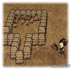 理由无他,猪人对蜘蛛包括蜘蛛人韦伯有天然的仇恨,影响正常的游戏节奏。当然你可以拆了猪村,然后在黄昏后集中重建,外面围上围墙。