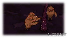 猪人这里也不多说了,如果你的地图有猪人守卫彩蛋,尽可能保持距离,它们会坚守图腾照亮的地方,血厚(600血量),不会睡觉(也没猪舍给它们睡),可以用来抵御猎犬的袭击。