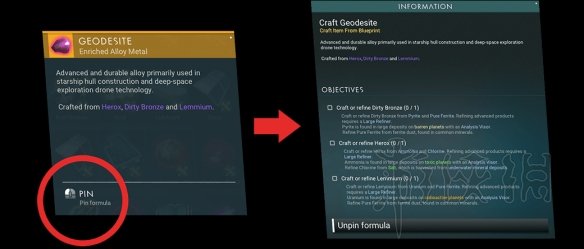 物质、手工制品、新技术和其他珍品在第一次遇到时会自动添加到新目录中。通过对标记系统的重做,玩家可以获得有关如何在其目录中查找或构建任何项目的详细分步说明。