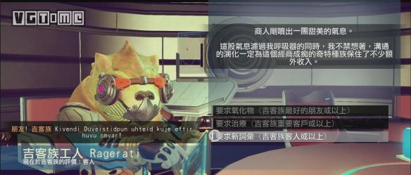 最终要求玩家在已知外星殖民者的状态达到‘大使’,其对应的数值为遇见40个外星人。在这片号称“无人深空”的宇宙中,我们却可以遇到多个种族,比较常见的就是吉克族、维金族和科瓦族。在星球上,我们可能会在随机出现的哨所或者设施里面见到外星人,与其对话时可以通过对话选项与其建立关系,当玩家认识的外星语越多,对话自然越顺畅,一句不懂也没关系看右侧的描述一般也能选择正确的选项。