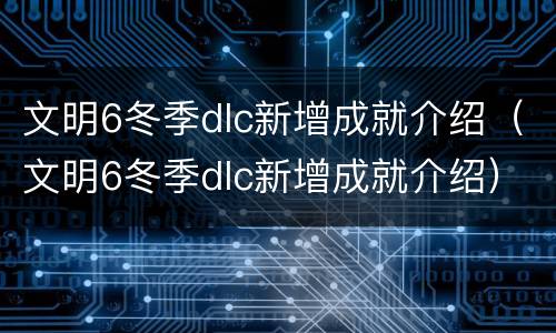 文明6冬季dlc新增成就介绍(文明6冬季dlc新增成就介绍)